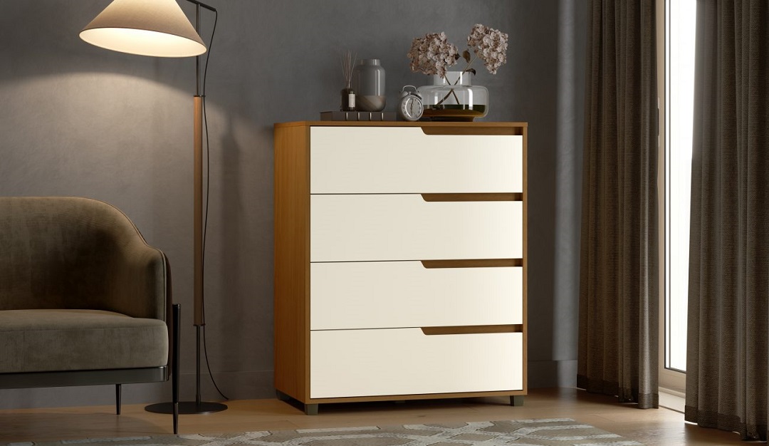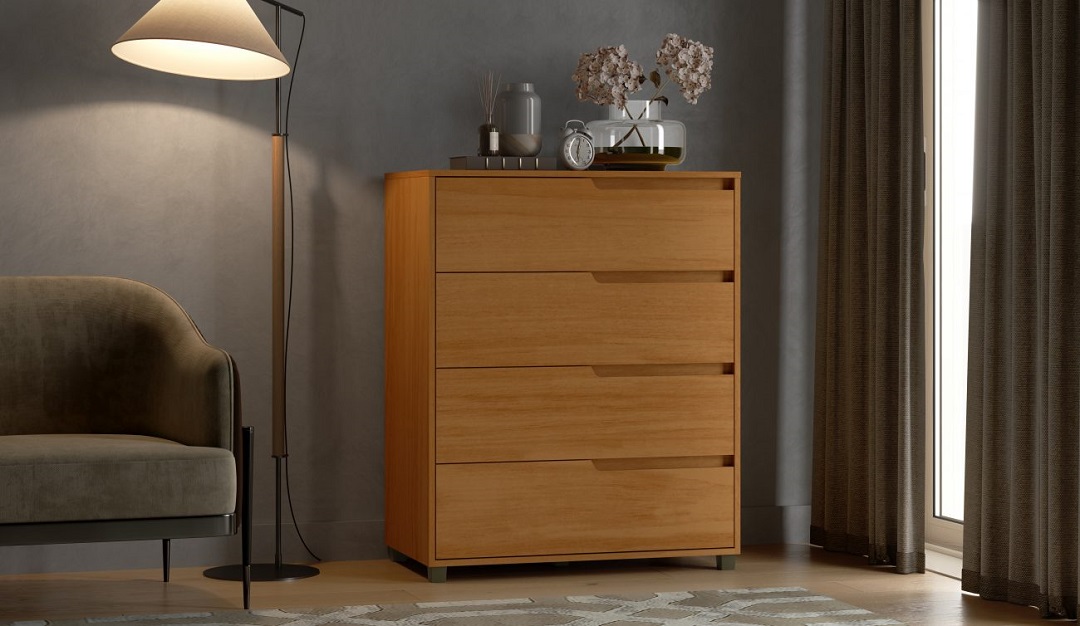 Construída 100% em MDF, a Cômoda Monet oferece durabilidade e qualidade superior para o seu quarto. Com um design pensado na modernidade e na praticidade do dia a dia, ela é a solução ideal para manter suas roupas e objetos pessoais organizados com elegância.