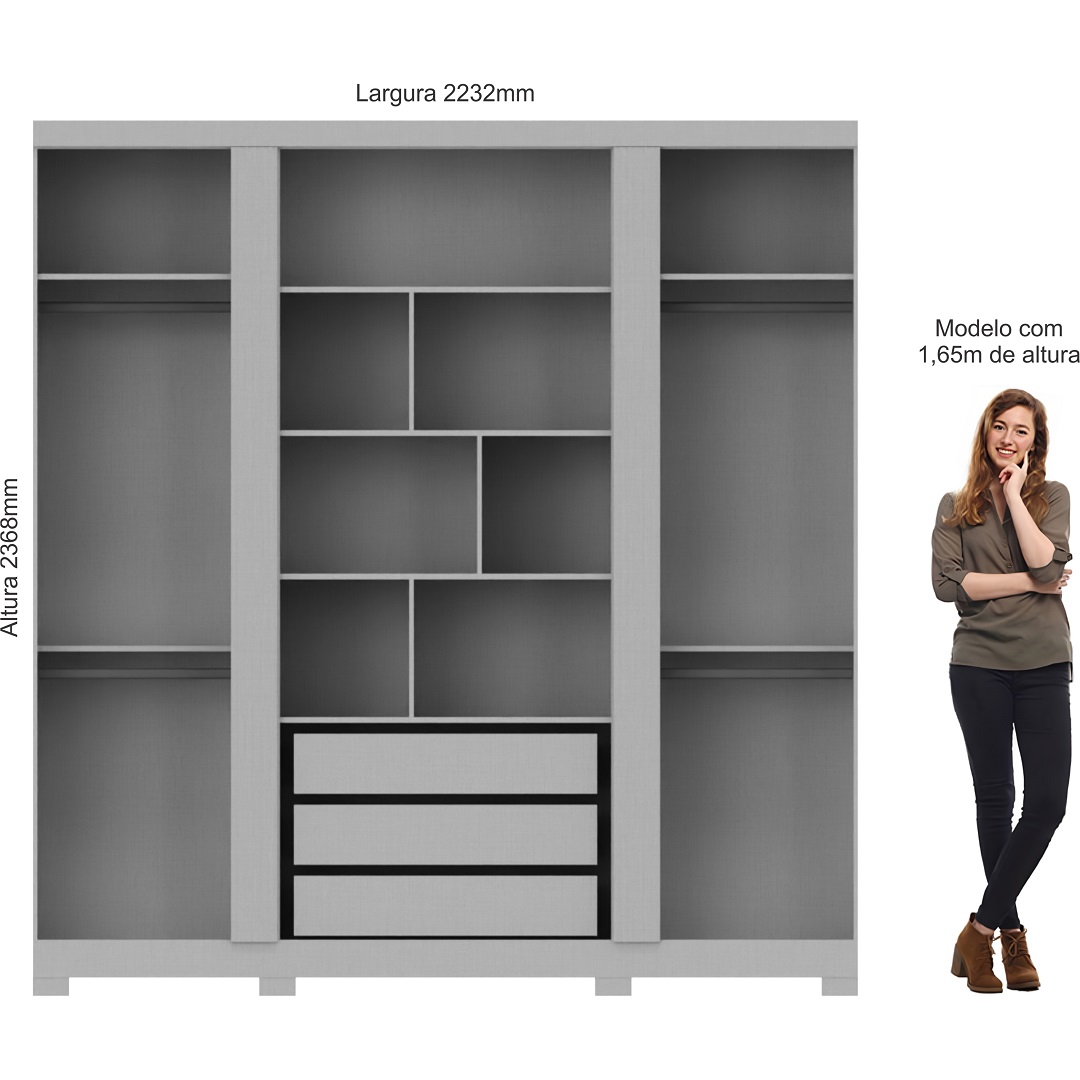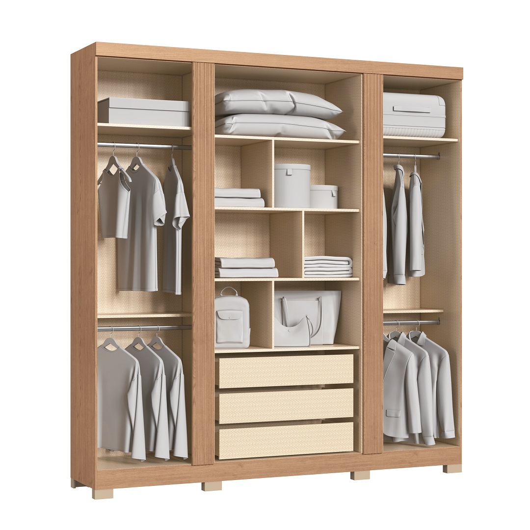 Design imponente, estrutura reforçada e organização inteligente! O Guarda-roupas Jasper foi pensado para quem busca um móvel sofisticado, funcional e resistente. Seu acabamento detalhado e interno bem planejado fazem dele uma excelente escolha para o quarto.