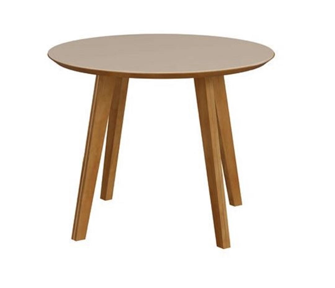 O destaque fica por conta do tampo redondo em vidro off white chanfrado em 45°, que agrega modernidade e um acabamento refinado, valorizando ainda mais o design da peça.