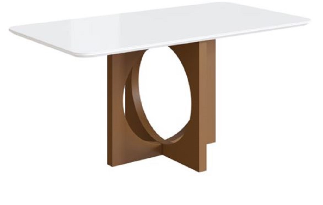 Tampo em MDF laminado amadeirado com vidro sobreposto, disponível nas cores Branco ou Fendi, que adicionam leveza e requinte ao ambiente.
